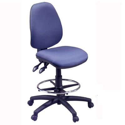 מושב וגב בעלי כריות תמיכה , הכסא מותאם לעבודה מול שולחן שרטוט או דלפק קבלה , ריפוד בד איכותי הנשמר לאורך שנים המותאם לצרכים המשרדיים .