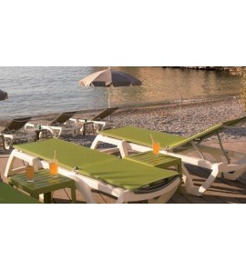 מיטת שיזוף העשויה מפלסטיק מאוד איכותי בשילוב ריפוד בד טקסליין כחול. המיטות נערמות אחת על שנייה לאחסון קל במיוחד ובעלות גלגלים לניוד נוח יותר. עמיד בכל תנאי מזג אוויר.תוצרת צרפת