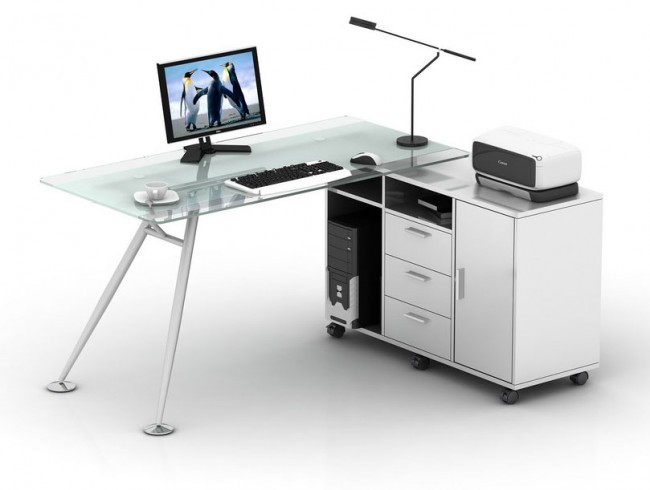 כוללת שלוחה עם ארגז מגירות, ארון אחסון ומקום לכונן מחשב.