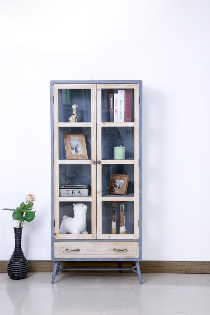 הויטרינה מגיעה בגווון עץ בשילוב אפור בטון
