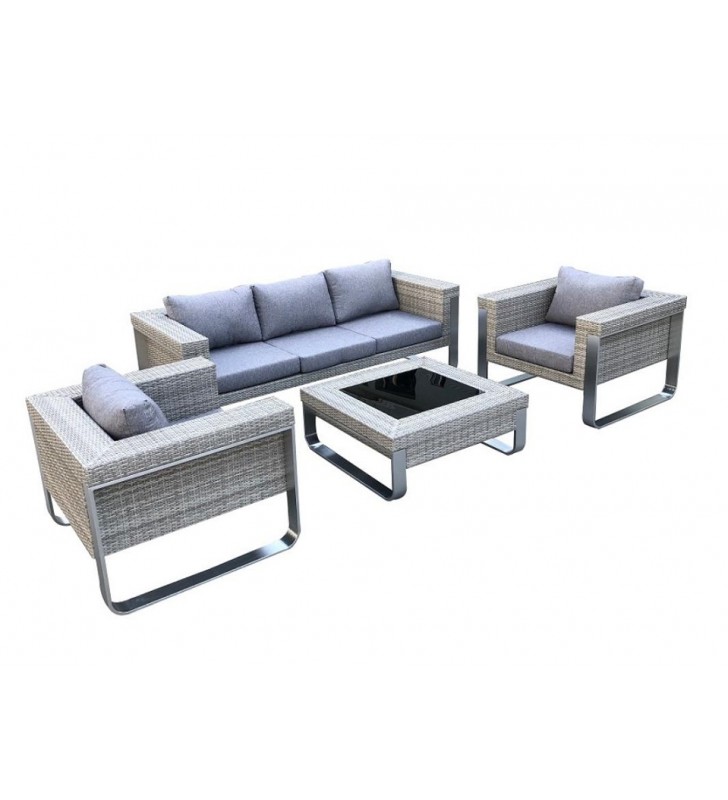 שלדת הסט עשויה אלומיניום אל חלד , חיפוי ראטן סינטטי ,חזק ועמיד .