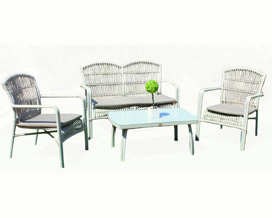 מערכת סלונית עשויה ראטן סינטטי בעלת שלדת אלומיניום.