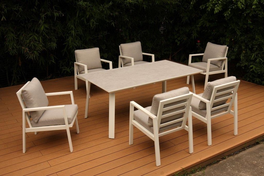 סט ישיבה מאלומיניום מדגם 2090 עם שולחן בחיפוי זכוכית מחוסמת מעוצבת ואטומה