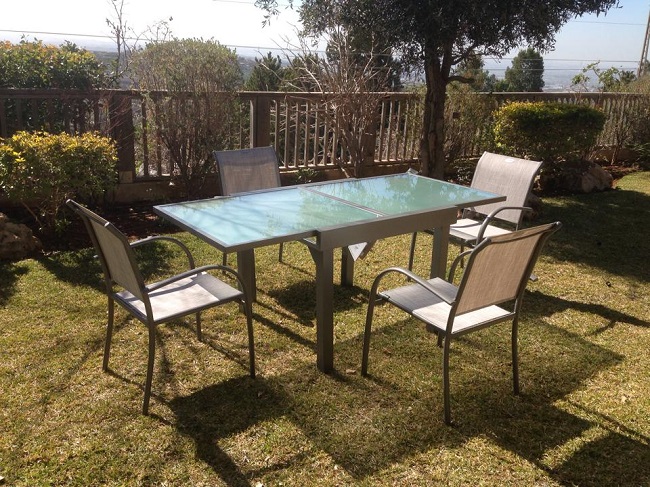כולל 4 כיסאות מאלומיניום בד טקסליין כולל ידיות הזכוכית מחוסמת
