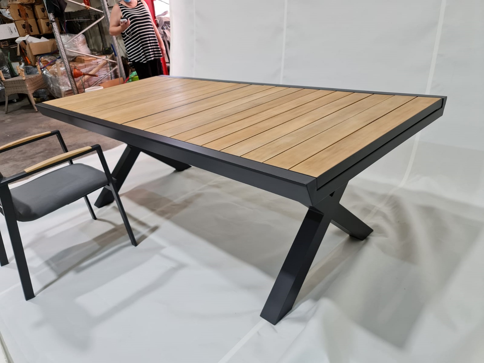 שולחן אלומיניום בשילוב עץ