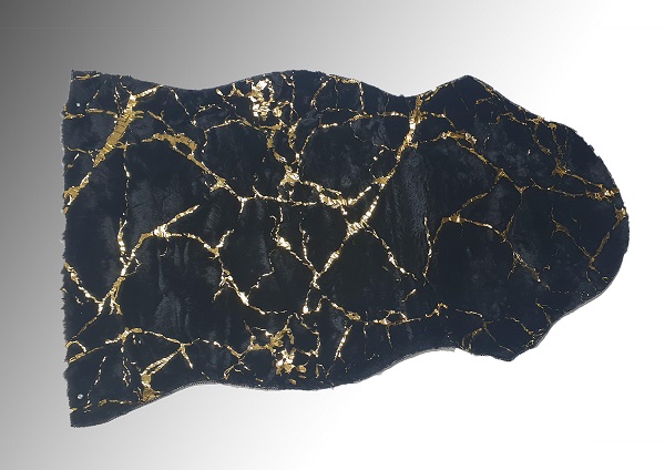 שטיח פרווה שחור עיטורי שיש זהב 862